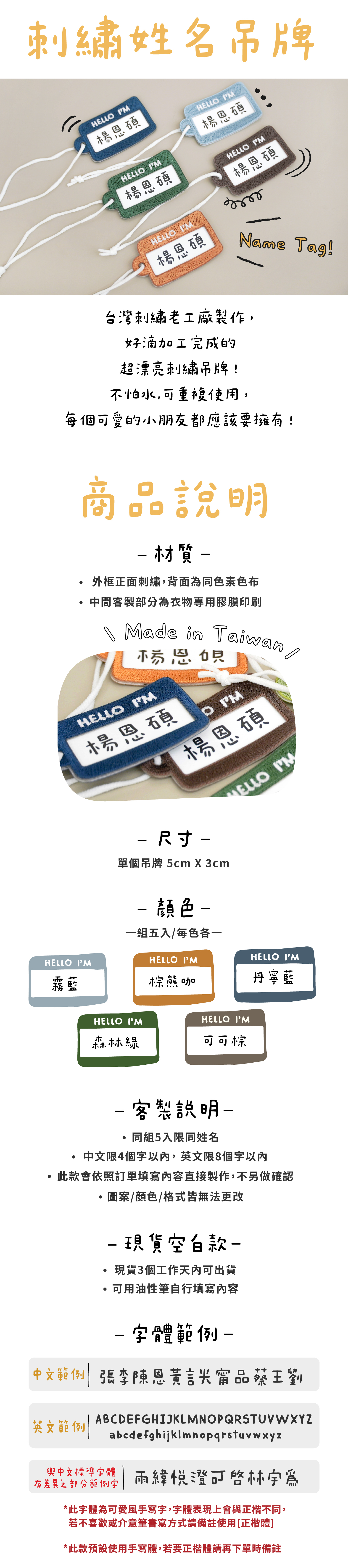 刺繡姓名吊牌-森林色系(5入)