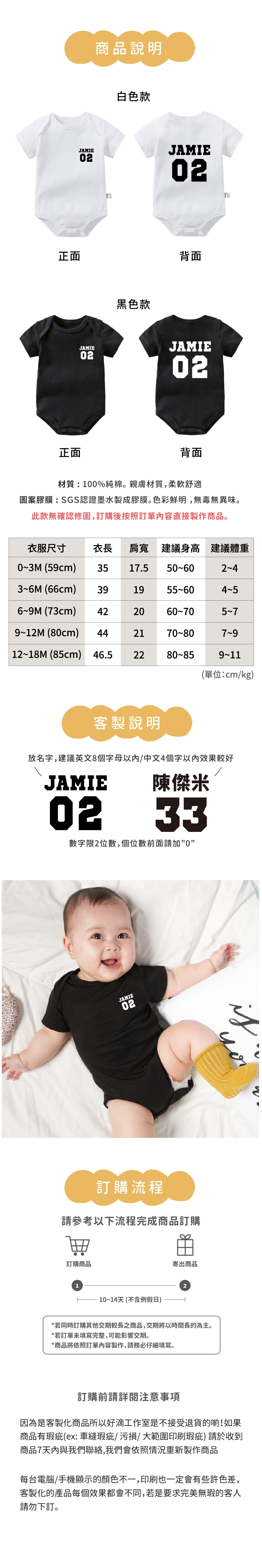 下單後請於 "訂單備註" 填寫客製名字.數字