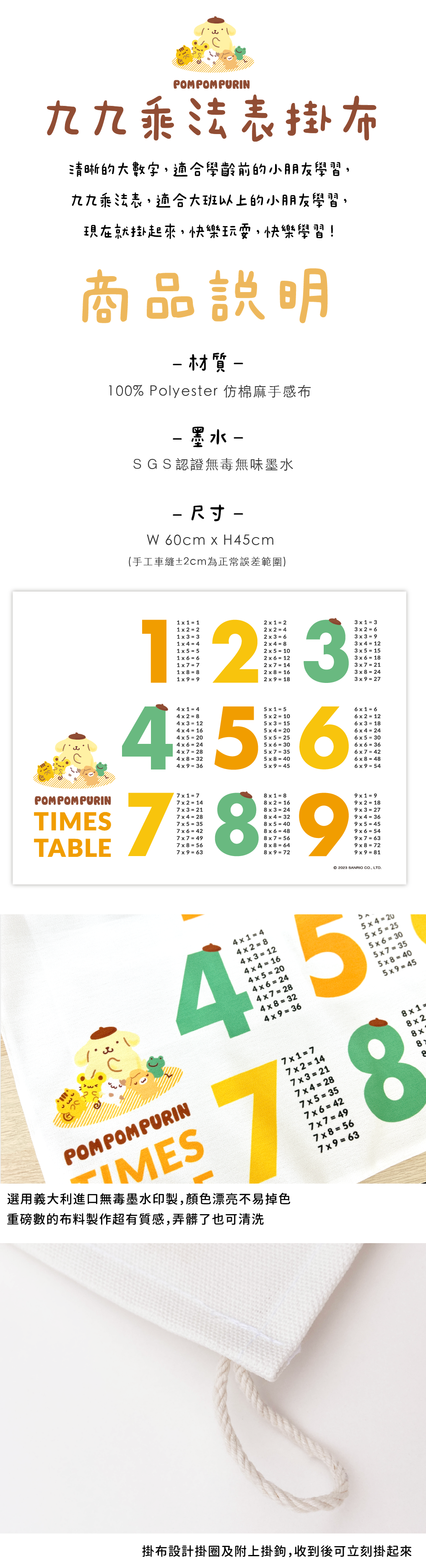 布丁狗正版授權九九乘法表掛布